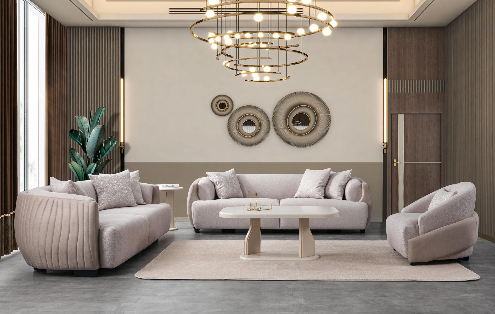 Detroit Sofa Set adds a sophisticated touch to your living spaces with its modern and elegant design. This sofa set, which draws attention with its aesthetic lines and stylish details, offers comfort while hosting your guests with its comfortable seating areas and stylish appearance. Detroit Sofa Set, produced from high quality materials, maintains its durability for many years and does not lose its elegance on the first day. With its large and comfortable cushions and ergonomic structure, it offers an ideal environment for you to relieve the tiredness of the day. This sofa set, which adapts to all kinds of decoration styles with its modern lines and elegant details, can be customized according to your personal taste with different color and fabric options. If you are looking for both comfort and elegance in your living space, Detroit Sofa Set will be the perfect choice for you.